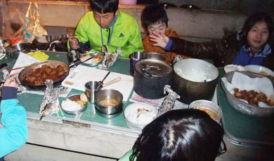 超豪華(^_^)キャンプでこんなにすごい料理はかつてなかった。初めてのカルチャーショック(^_-)-☆ でも、さむい!!