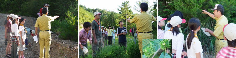 図鑑で調べるのと違い、足で歩き、実際の木を見て名前などを教えてもらう。