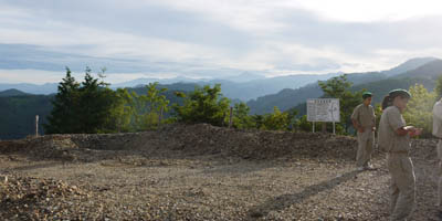 上の写真は開村式のあった整備された場所。 下の写真は今年5月下見時の風景。 これを重機で上の写真のように開墾してもらった。