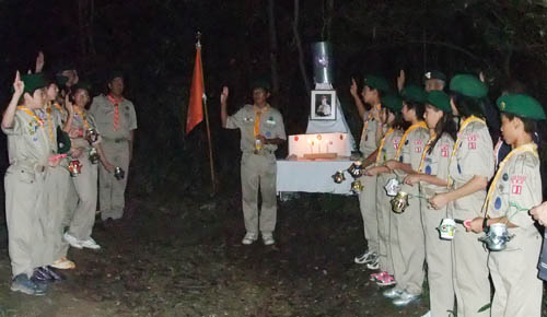 今日は、新入隊員の「3つのちかい」の宣誓式を夜におこなう。
