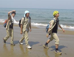 翌日はプロジェクト達成の喜びと感謝の気持ちを近くの海水浴場のゴミ拾い奉仕で表現した。(もちろん海水浴も…)