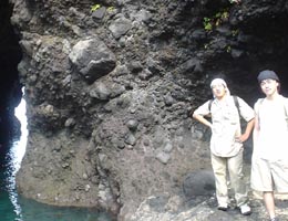 帰路につく前に輪島の朝市を見学,北野君は大きなサザエをおみやげに…。