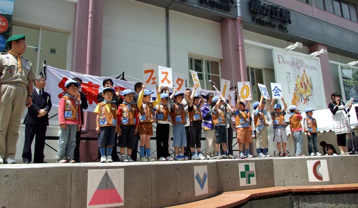 開会宣言は12時から、昨年はひねたボーイ隊だったが、今年は元に戻ってかわいいいビーバー隊